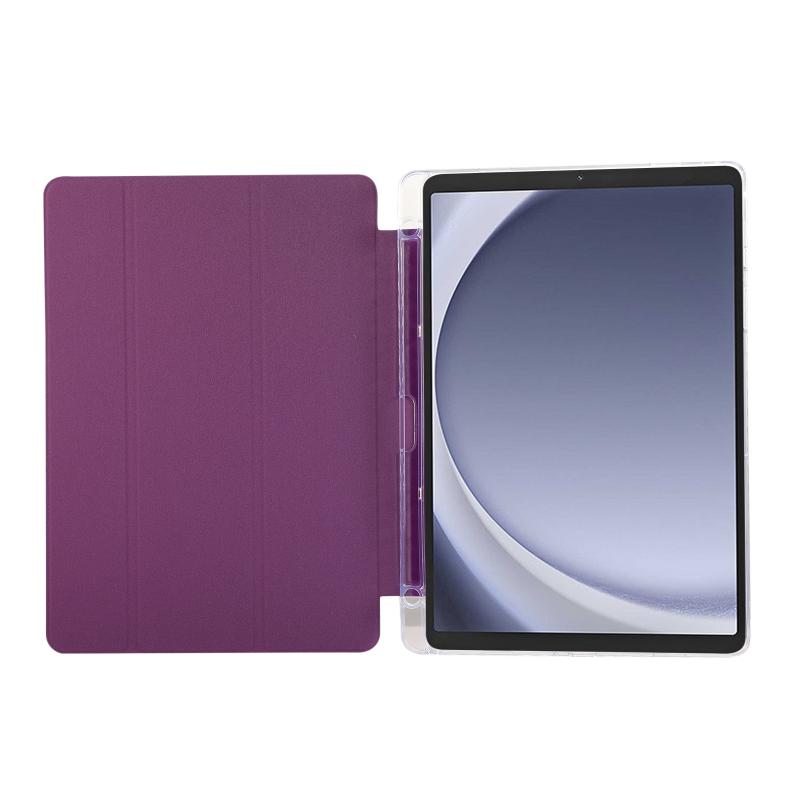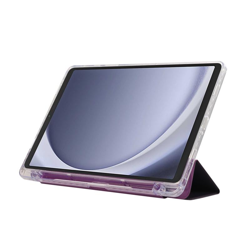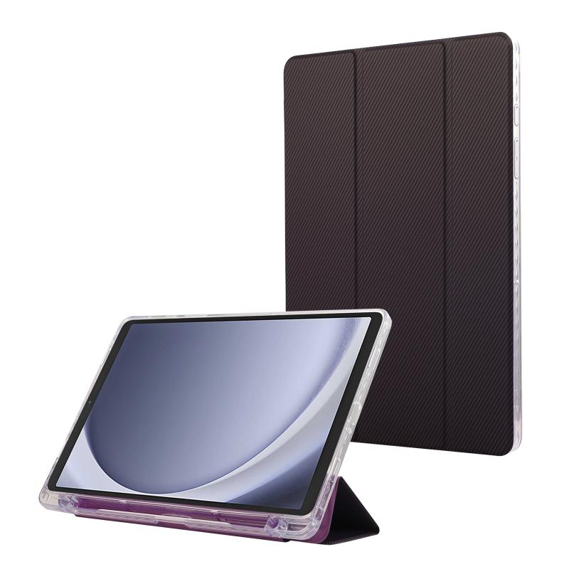 For Samsung Galaxy Tab A9+ Carbon Fiber Clear Acrylic 3-Fold Leather Tablet Case(Purple)