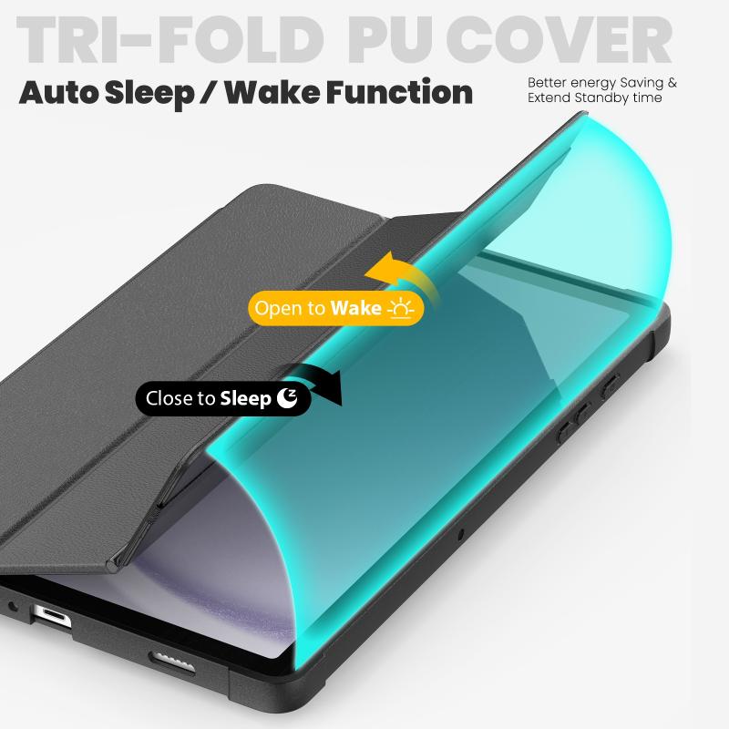 6. Auto Sleep / Wake: Better energy conservation & extending standby time when cover stays close to the screen and Easy access to all buttons and ports without disassembling the tablet from case.