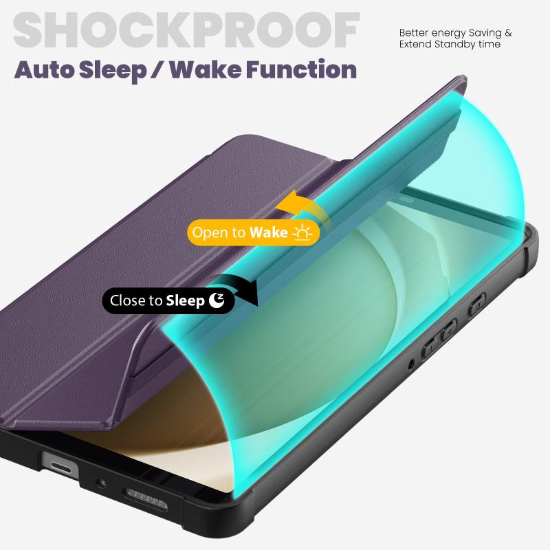 6. Auto Sleep / Wake: Better energy conservation & extending standby time when cover stays close to the screen and Easy access to all buttons and ports without disassembling the tablet from case.