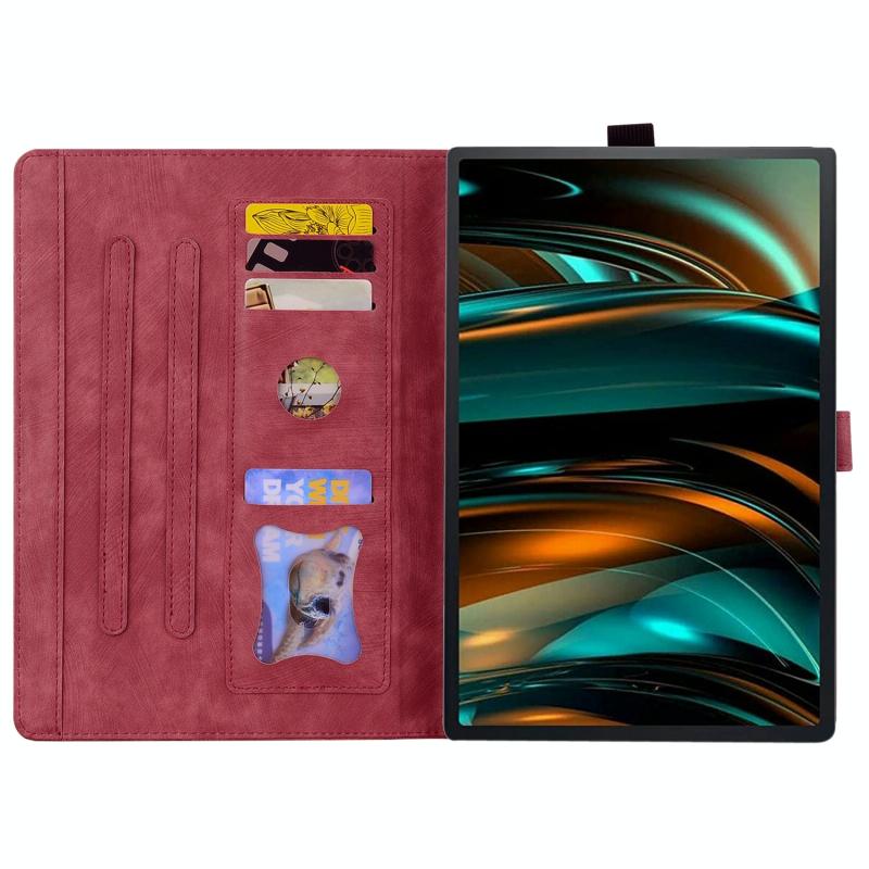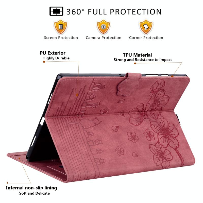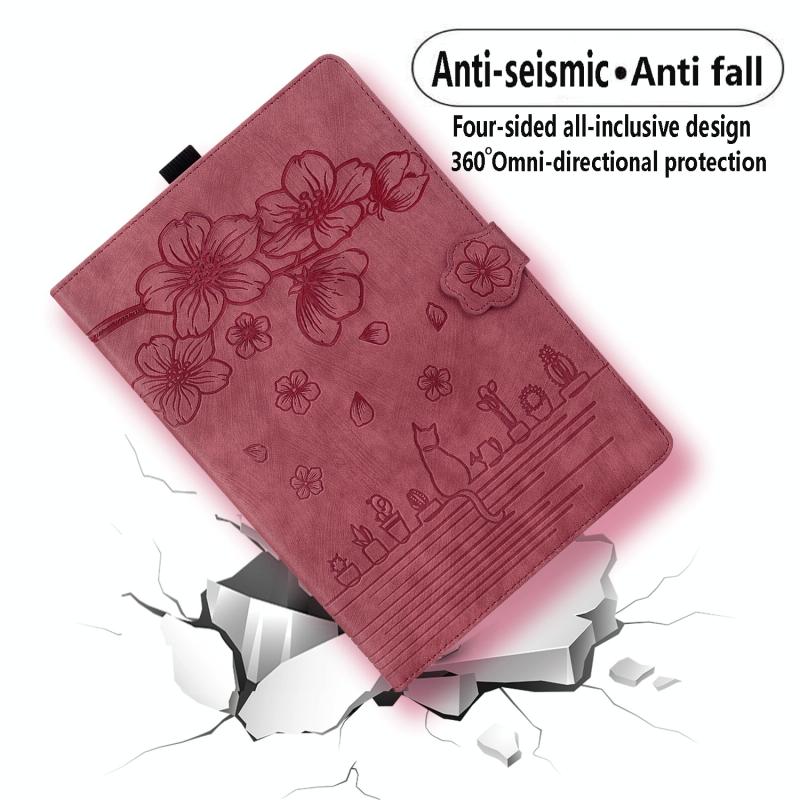 For Samsung Galaxy Tab A9+ Cartoon Sakura Cat Embossed Leather Tablet Case(Red)