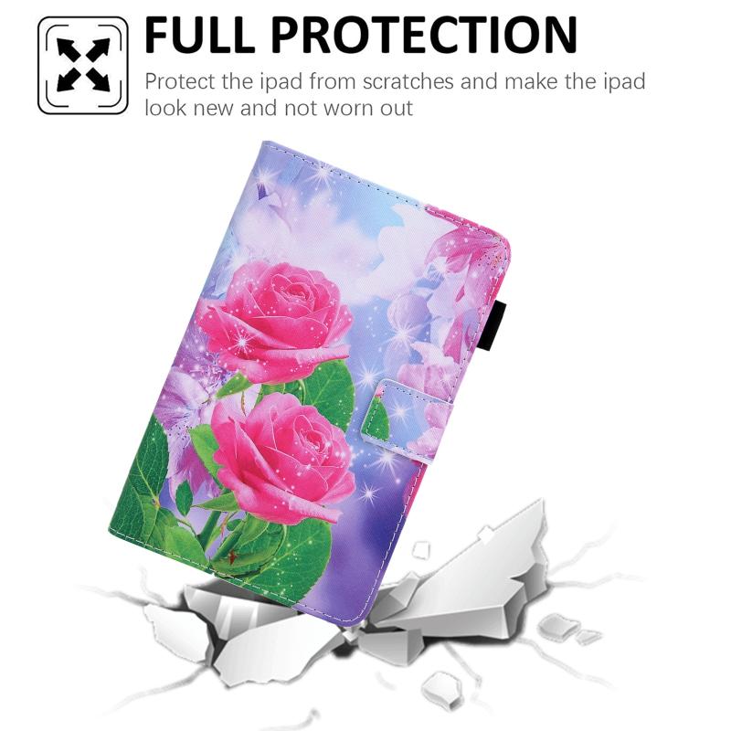 For Samsung Galaxy Tab A9 Colored Drawing Leather Tablet Case(Red Rose)