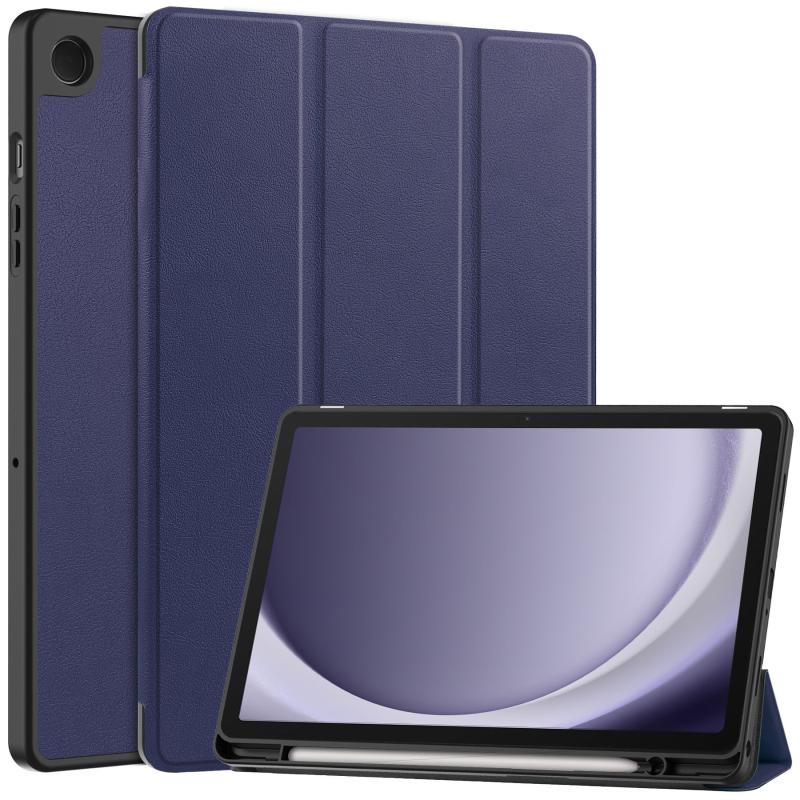 For Samsung Galaxy Tab A9+ Custer 3-folding Holder TPU Smart Leather Tablet Case(Dark Blue)