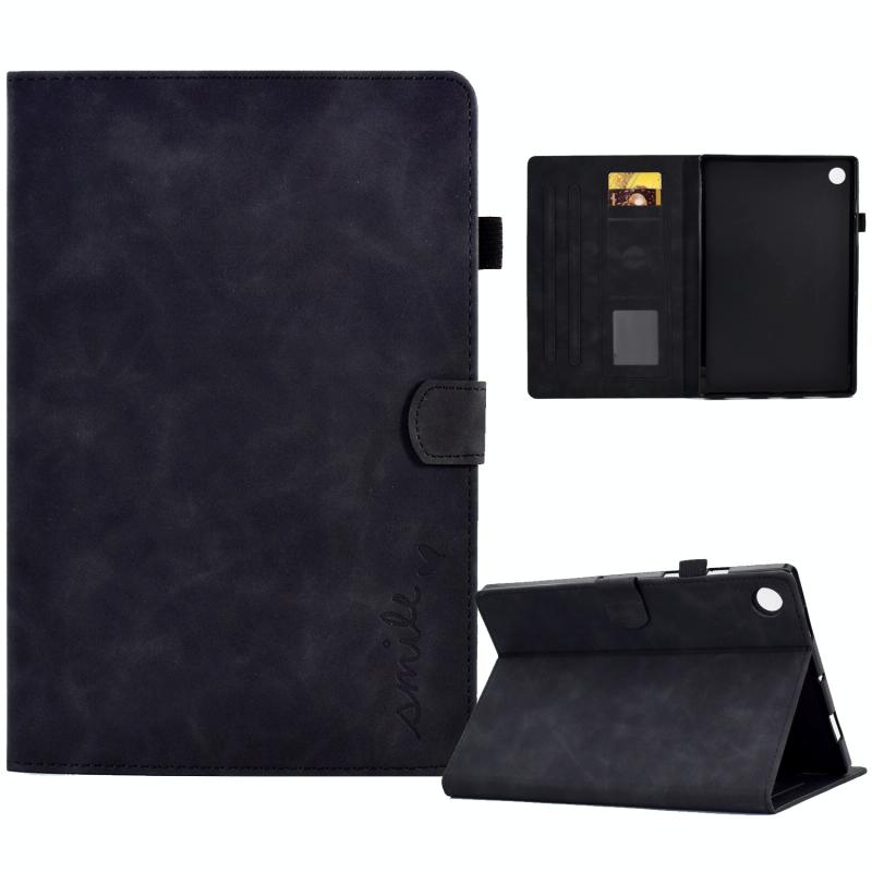 For Samsung Galaxy Tab A9+ Embossed Smile Flip Smart Leather Tablet Case(Black)
