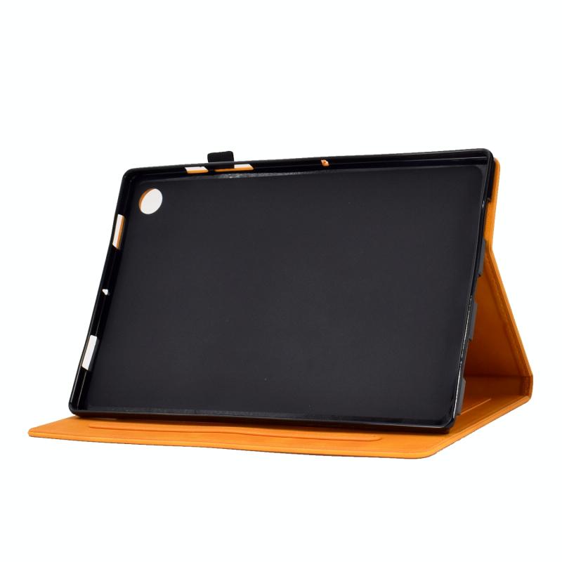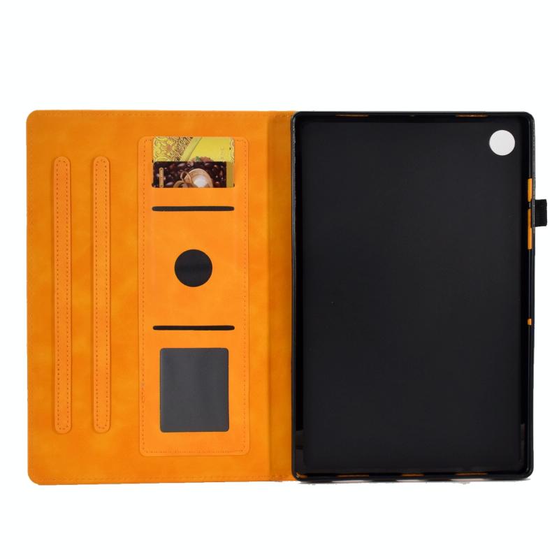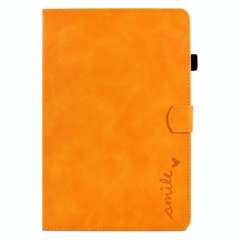 For Samsung Galaxy Tab A9+ Embossed Smile Flip Smart Leather Tablet Case(Khaki)