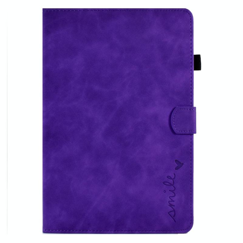 For Samsung Galaxy Tab A9 Embossed Smile Flip Smart Leather Tablet Case(Purple)