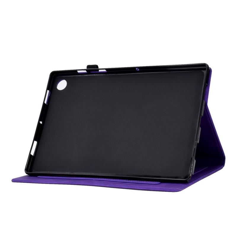 For Samsung Galaxy Tab A9+ Embossed Smile Flip Smart Leather Tablet Case(Purple)