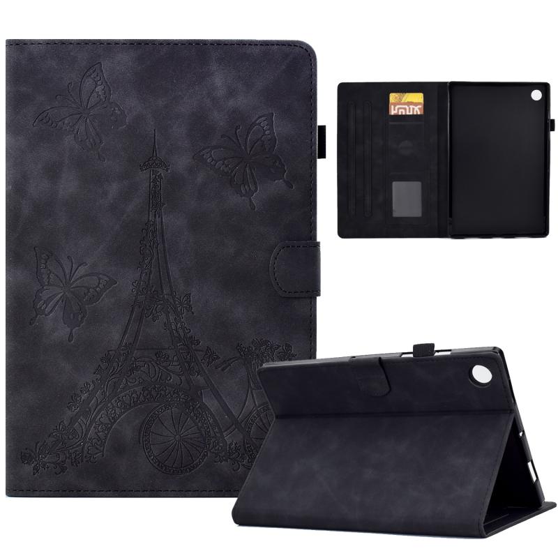 For Samsung Galaxy Tab A9 Embossed Tower Flip Leather Tablet Case(Black)