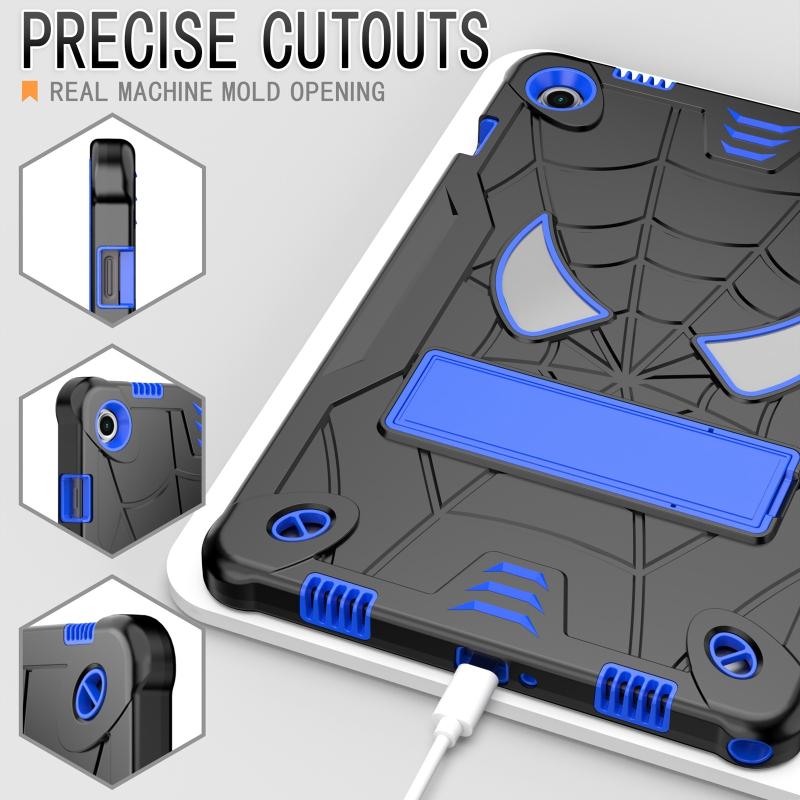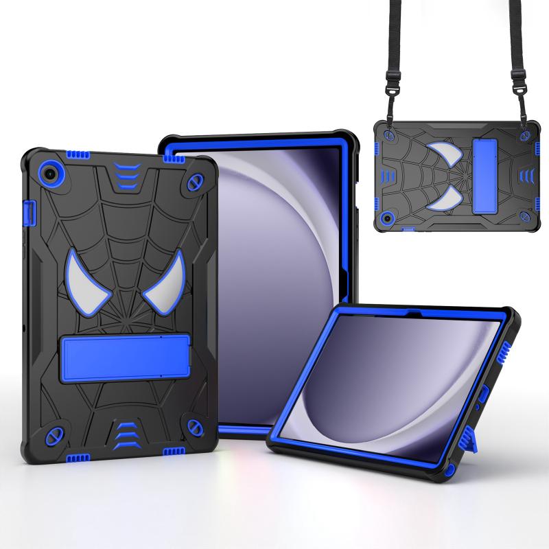For Samsung Galaxy Tab A9+ Fold-Holder Spider Silicone Hybrid PC Tablet Case(Back Blue)