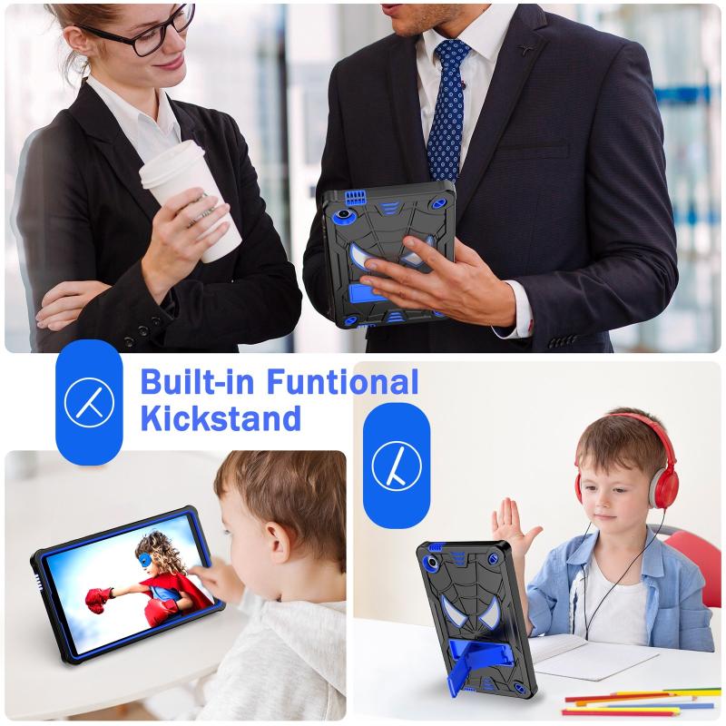 For Samsung Galaxy Tab A9 Fold-Holder Spider Silicone Hybrid PC Tablet Case(Back Blue)