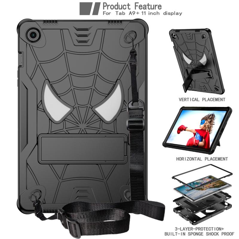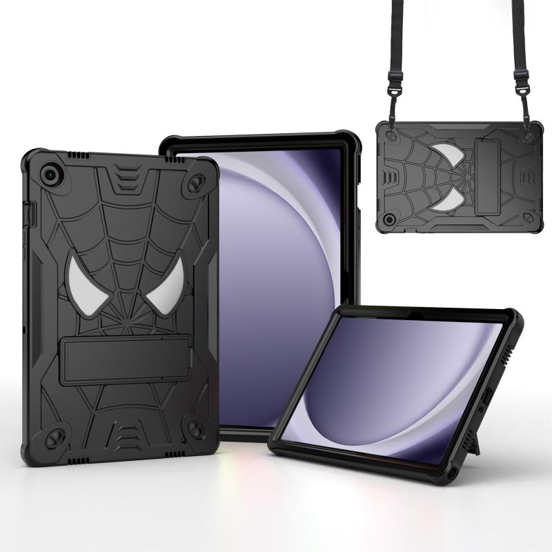 For Samsung Galaxy Tab A9+ Fold-Holder Spider Silicone Hybrid PC Tablet Case(Black)