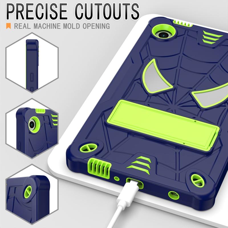 For Samsung Galaxy Tab A9 Fold-Holder Spider Silicone Hybrid PC Tablet Case(Navy Yellow Green)