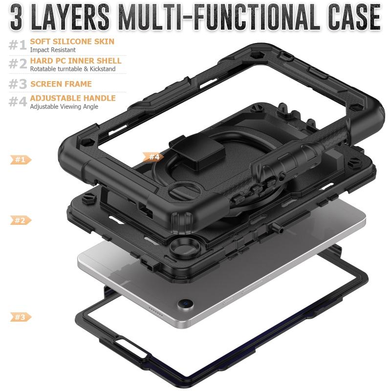 For Samsung Galaxy Tab A9 Handle Silicone Hydric PC Tablet Case with Shoulder Strap(Black)