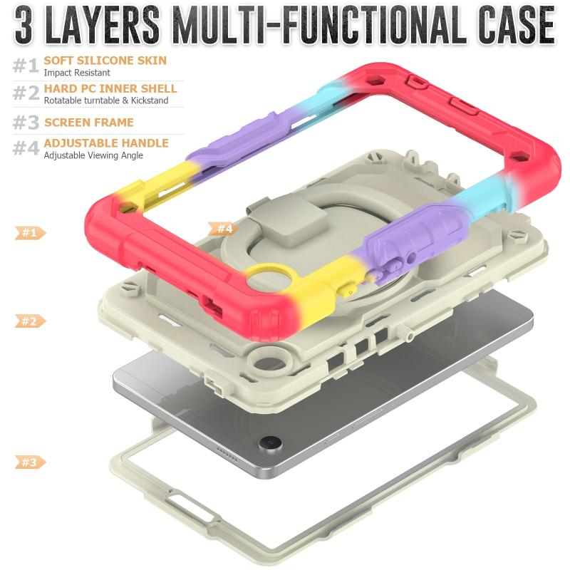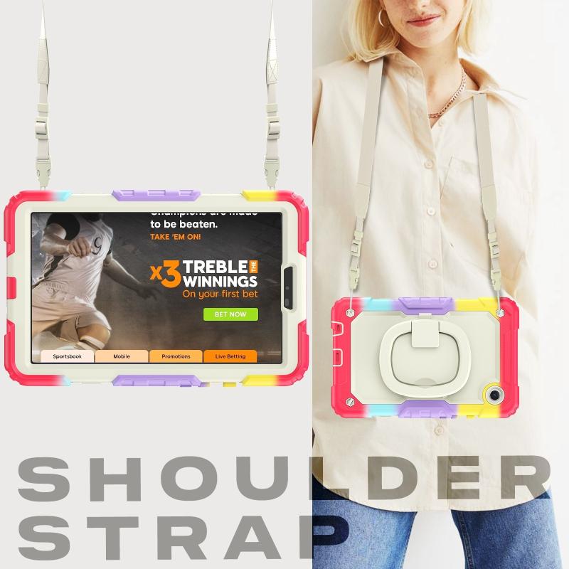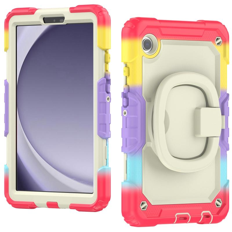 For Samsung Galaxy Tab A9 Handle Silicone Hydric PC Tablet Case with Shoulder Strap(Colorful Red)
