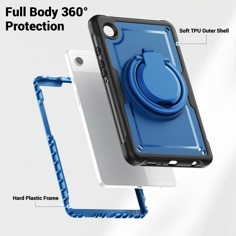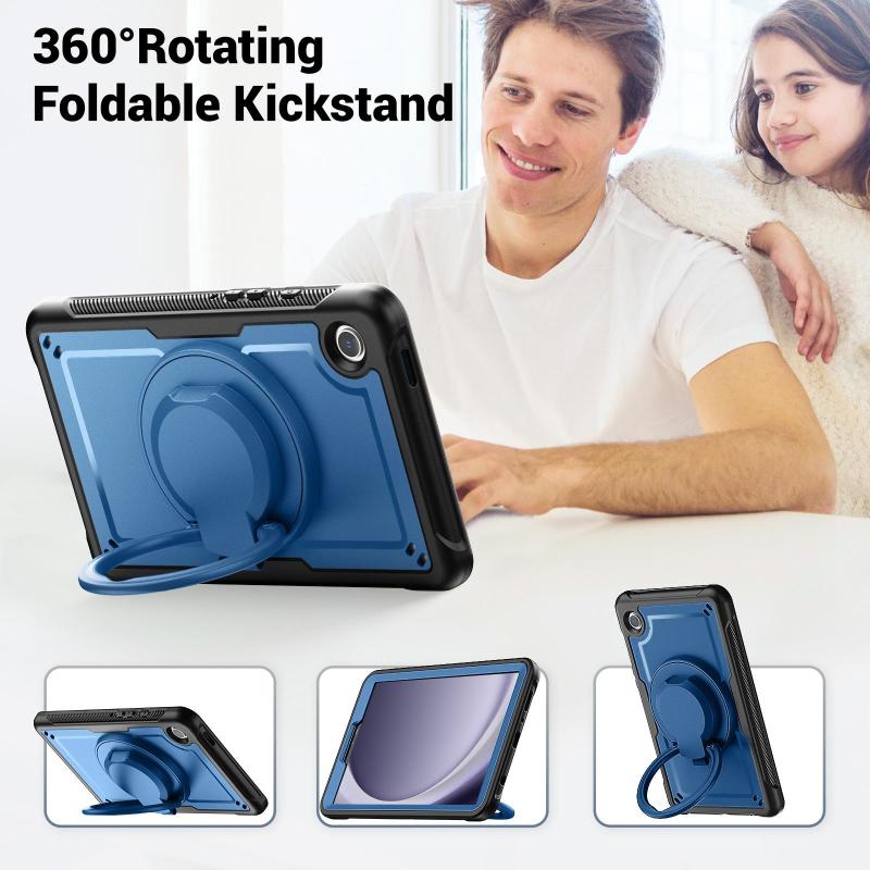 For Samsung Galaxy Tab A9 Honeycomb Hybrid Tablet Case with Handle Holder & Strap(Navy Blue)