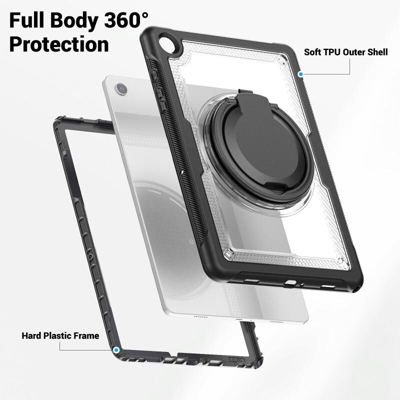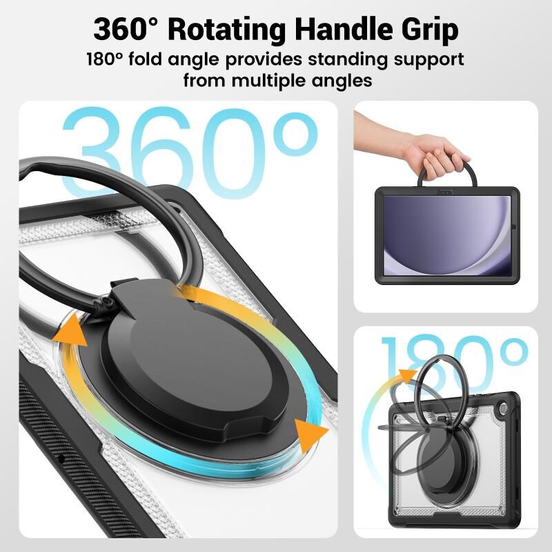 For Samsung Galaxy Tab A9+ Honeycomb Hybrid Tablet Case with Handle Holder & Strap(Transparent)