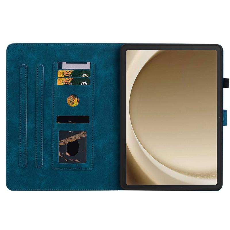 For Samsung Galaxy Tab A9+ Lily Embossed Leather Tablet Case(Dark Blue)
