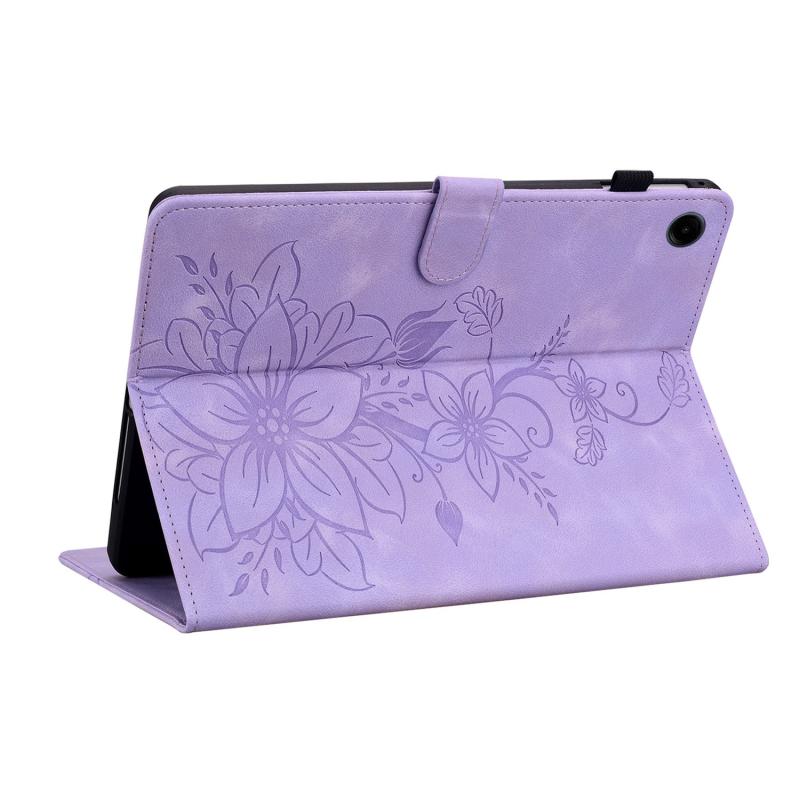 For Samsung Galaxy Tab A9 Lily Embossed Leather Tablet Case(Purple)