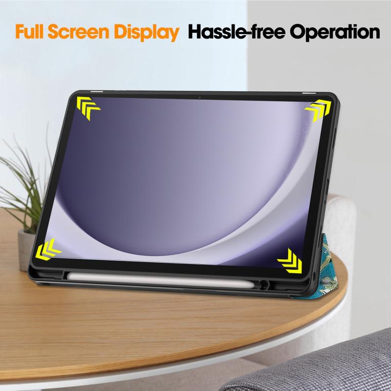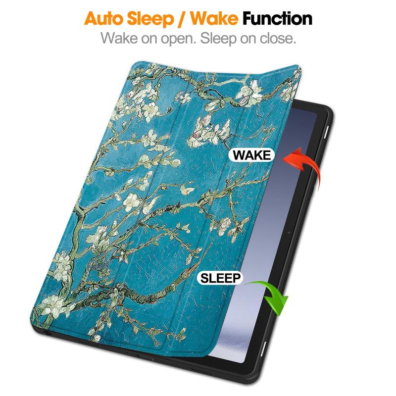 For Samsung Galaxy Tab A9+ Painted 3-folding Holder TPU Smart Leather Tablet Case(Apricot Blossom)