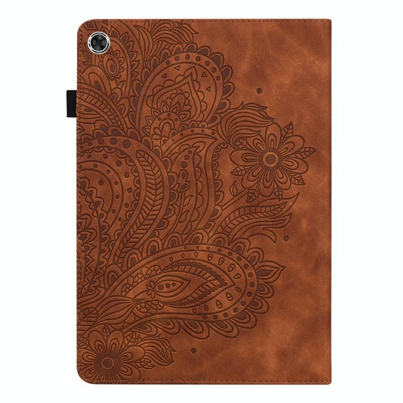 For Samsung Galaxy Tab A9+ Peacock Embossed Pattern Leather Tablet Case(Brown)