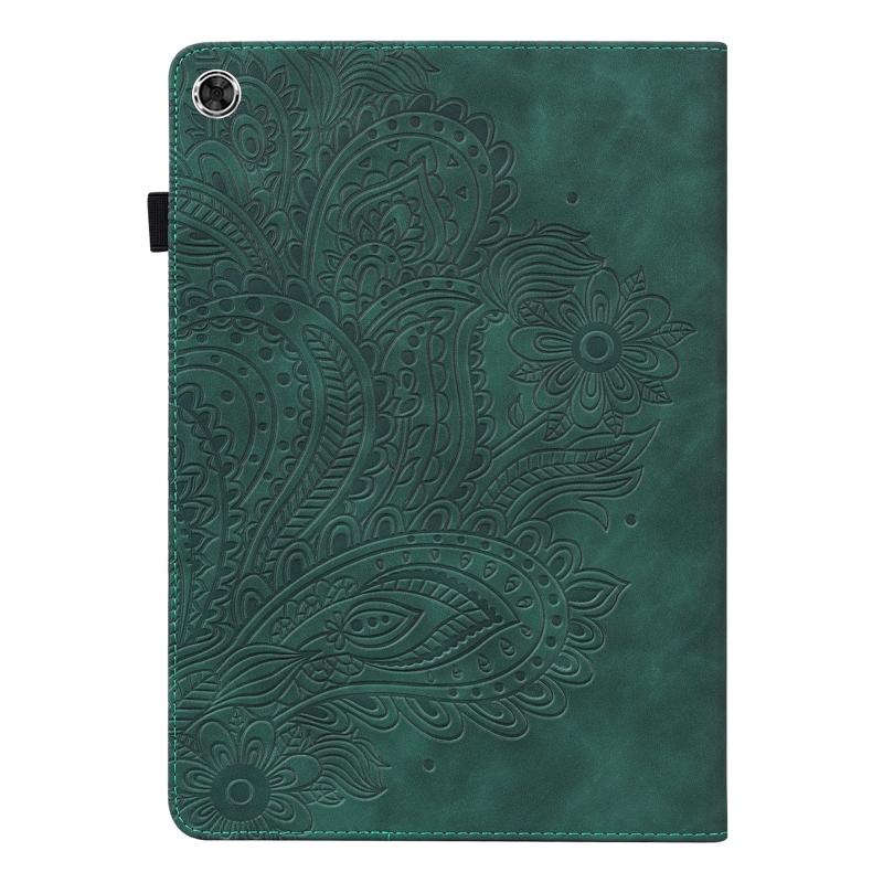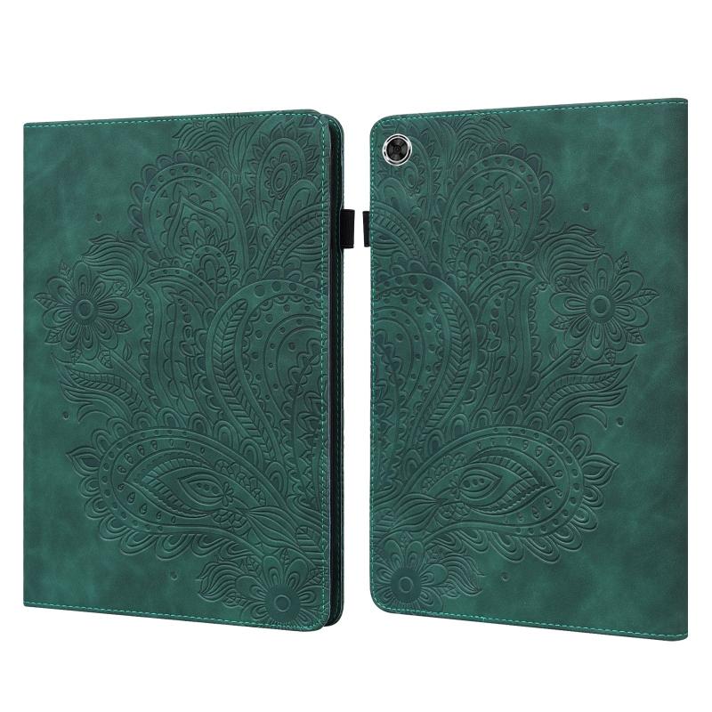 For Samsung Galaxy Tab A9 Peacock Embossed Pattern Leather Tablet Case(Green)