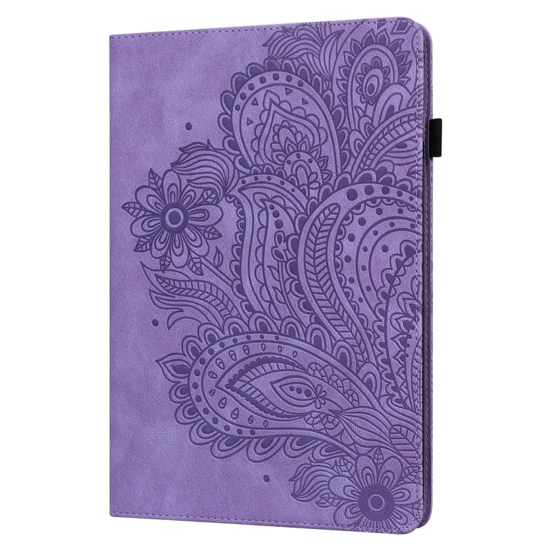 For Samsung Galaxy Tab A9+ Peacock Embossed Pattern Leather Tablet Case(Purple)