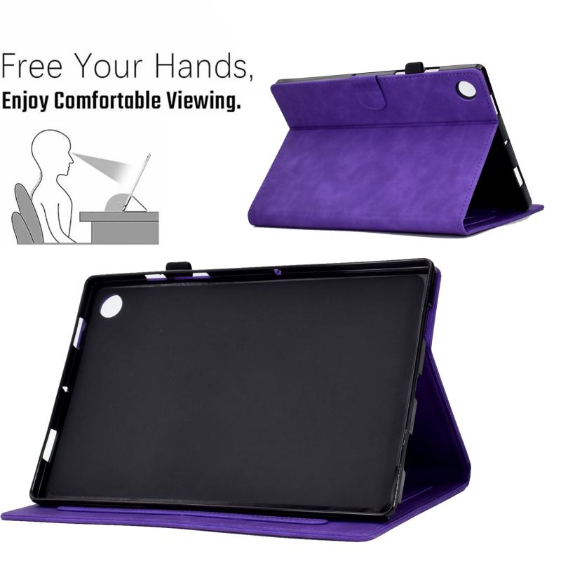 For Samsung Galaxy Tab A9 Peony Butterfly Embossed Leather Smart Tablet Case(Purple)