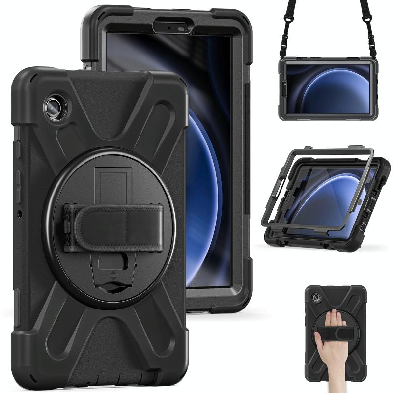 For Samsung Galaxy Tab A9 Rotary Handle Grab TPU + PC Tablet Case(Black)