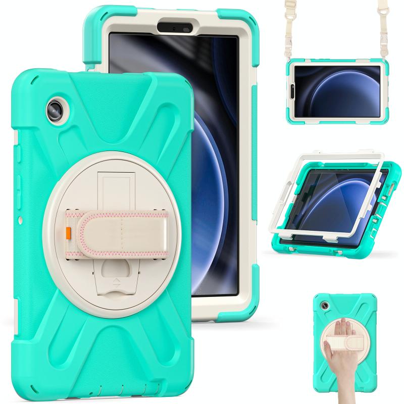 For Samsung Galaxy Tab A9 Rotary Handle Grab TPU + PC Tablet Case(Green)