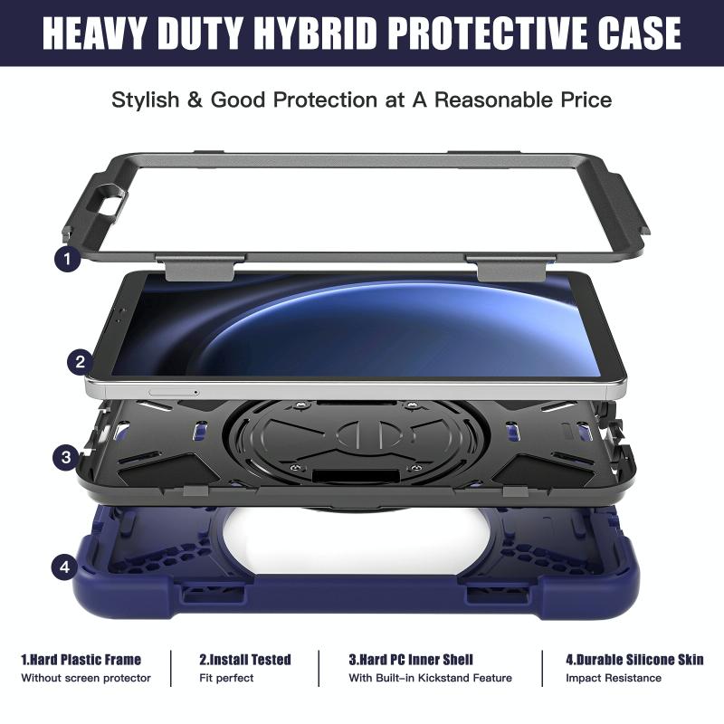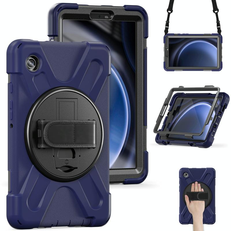For Samsung Galaxy Tab A9 Rotary Handle Grab TPU + PC Tablet Case(Navy Blue)
