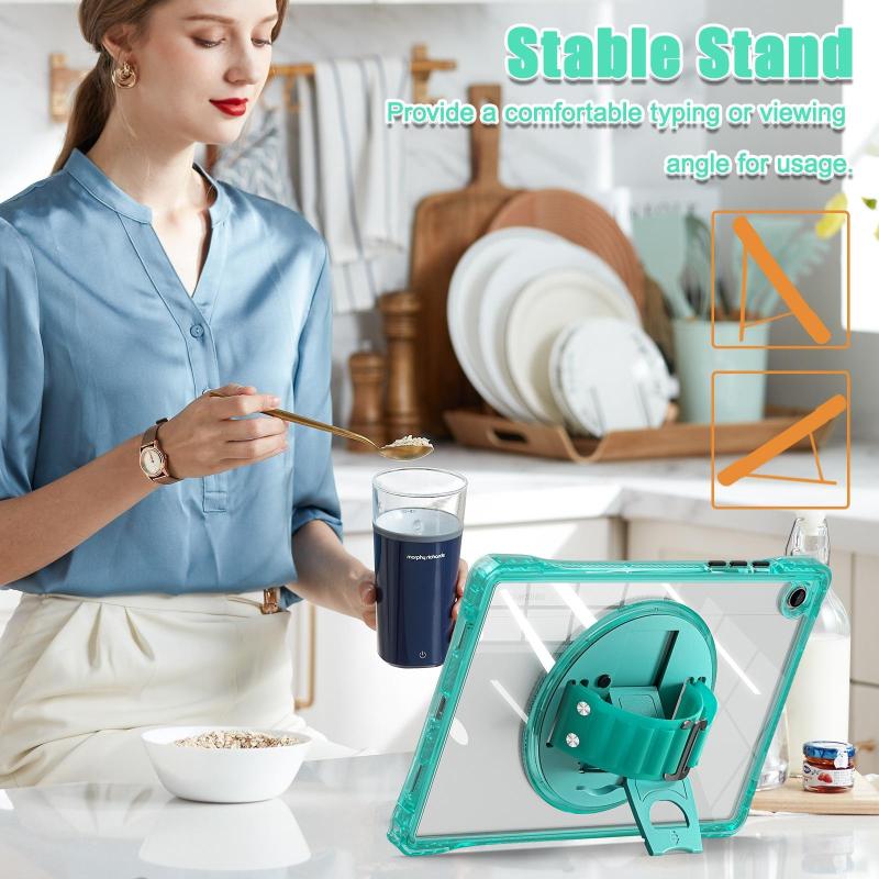 For Samsung Galaxy Tab A9+ Rotation Grip Holder TPU Hybrid Clear PC Tablet Case(Light Green)