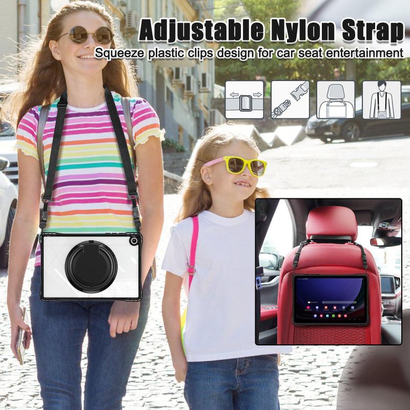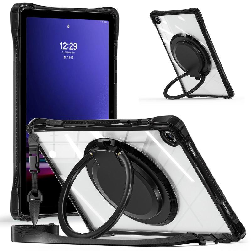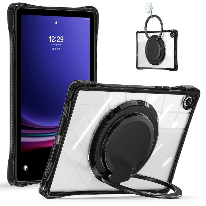 For Samsung Galaxy Tab A9+ Rotation Ring Handle TPU Hybrid Clear PC Tablet Case(Black)