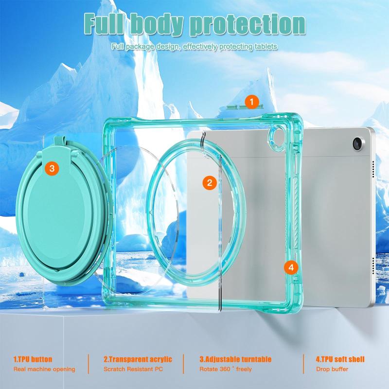 For Samsung Galaxy Tab A9+ Rotation Ring Handle TPU Hybrid Clear PC Tablet Case(Light Green)