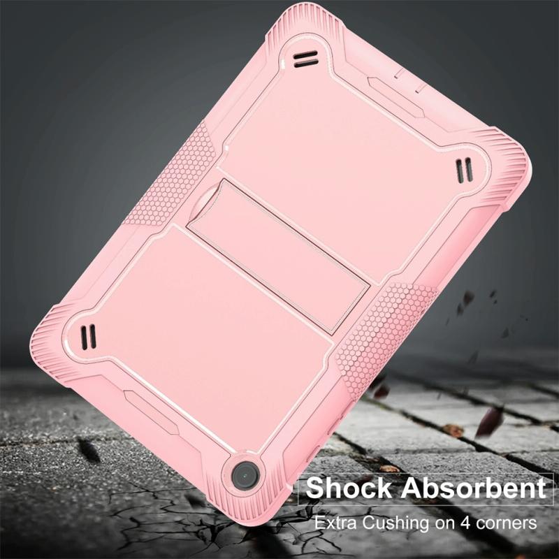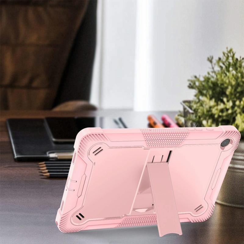 For Samsung Galaxy Tab A9 Shockproof Silicone Hybrid PC Tablet Case with Holder(Rose Gold)