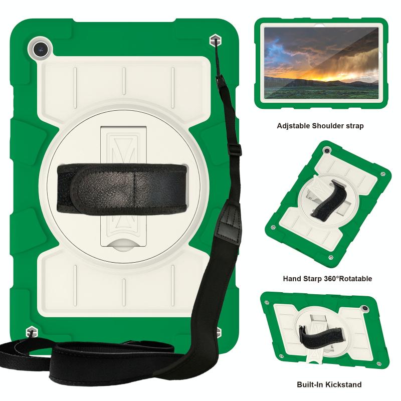 For Samsung Galaxy Tab A9+ Silicone Hybrid PC Shockproof Tablet Case with Shoulder Strap(Classic Green)