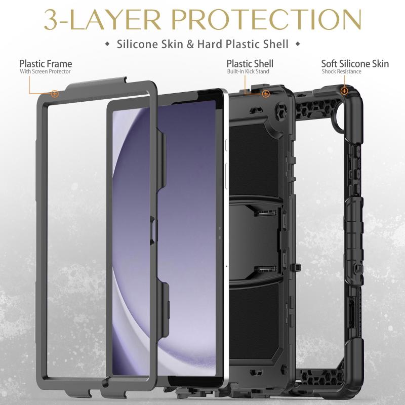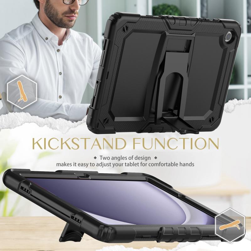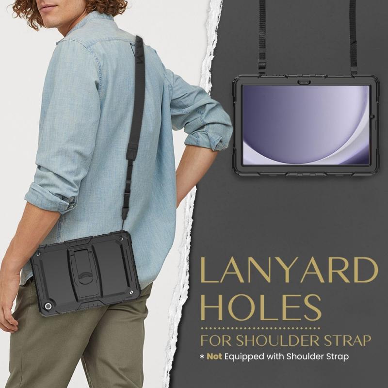 For Samsung Galaxy Tab A9+ Silicone Hydric PC Tablet Case with Shoulder Strap & Holder(Black)
