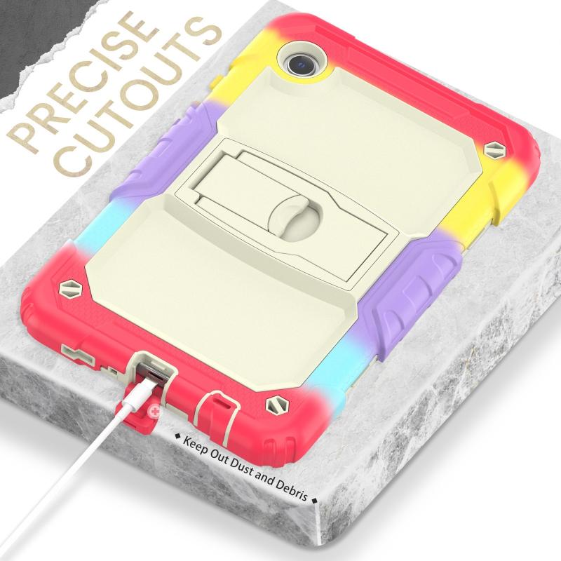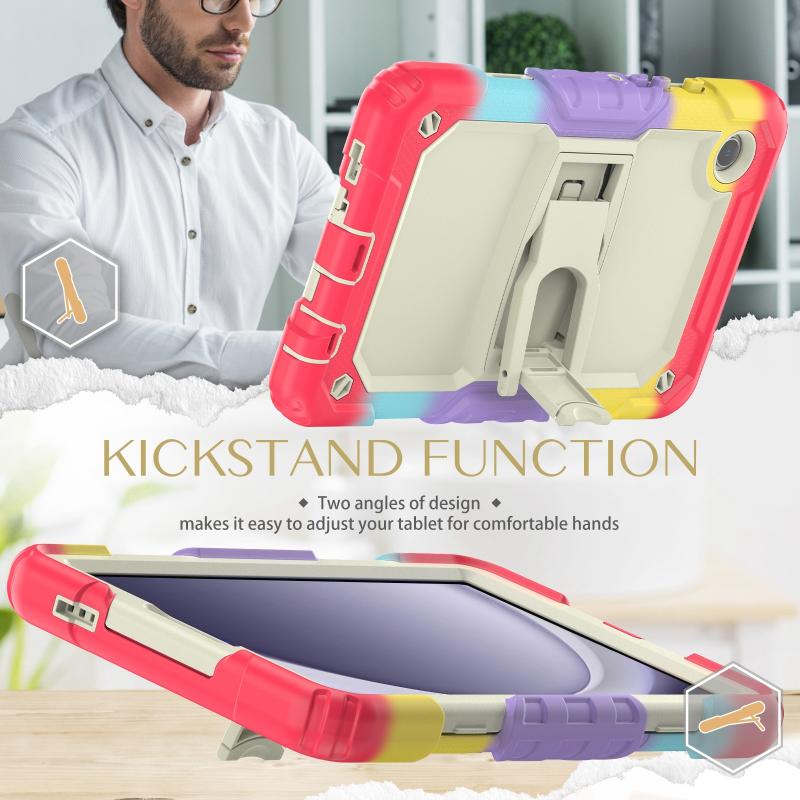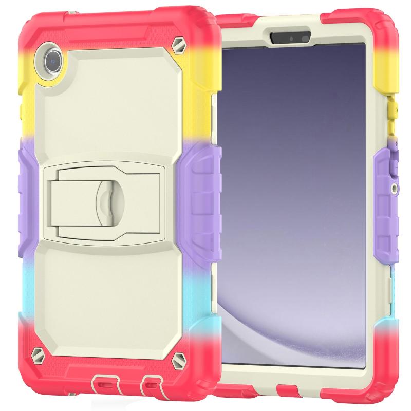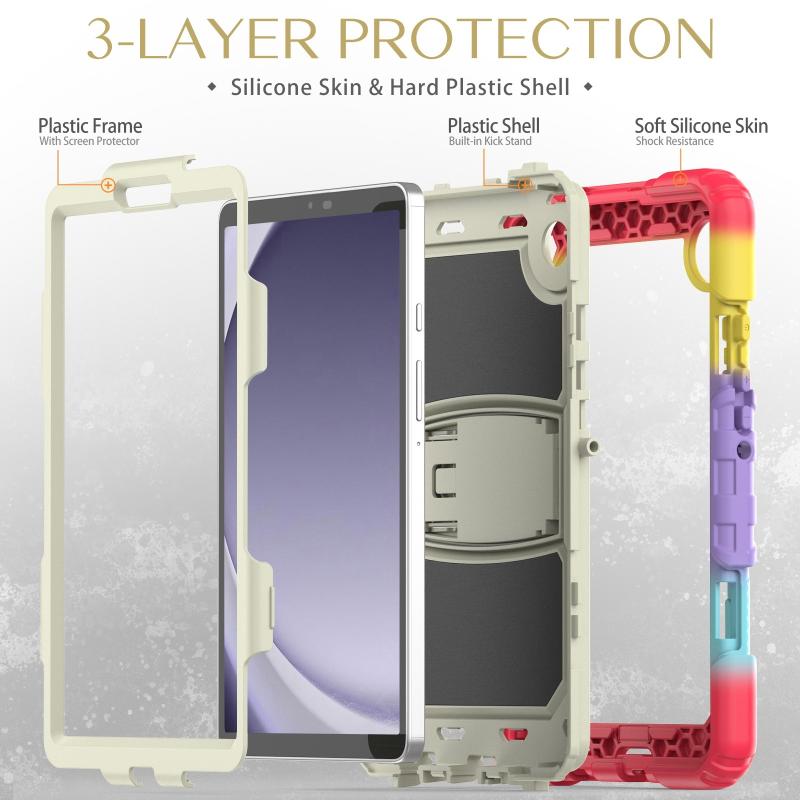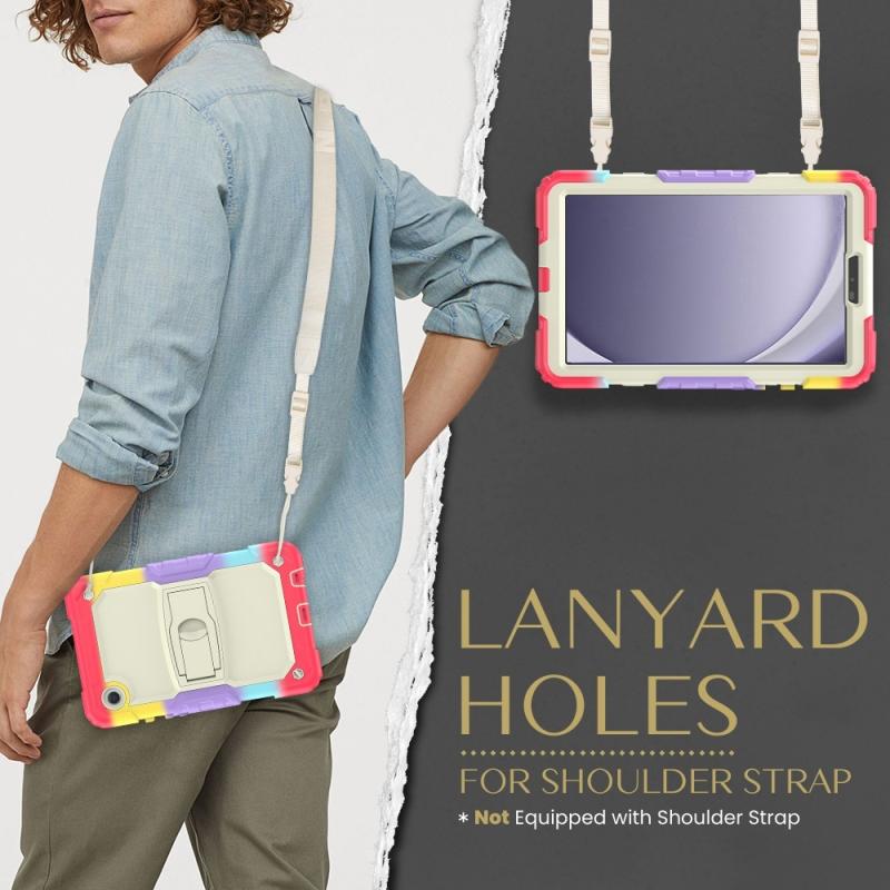 For Samsung Galaxy Tab A9 Silicone Hydric PC Tablet Case with Shoulder Strap & Holder(Colorful Red)