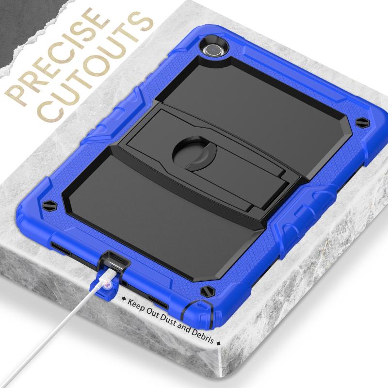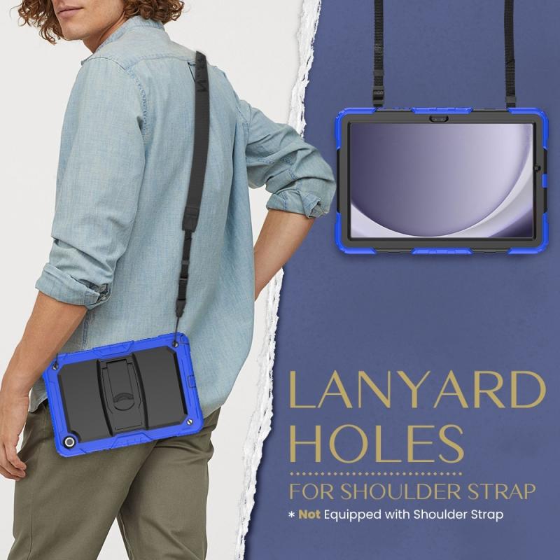 For Samsung Galaxy Tab A9+ Silicone Hydric PC Tablet Case with Shoulder Strap & Holder(Dark Blue)