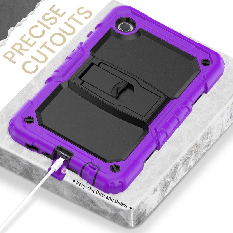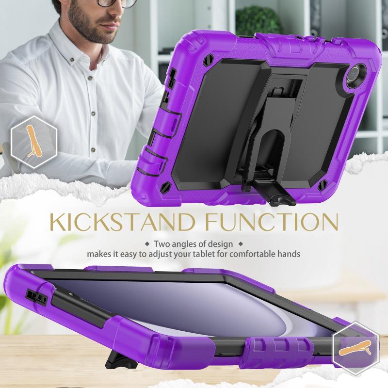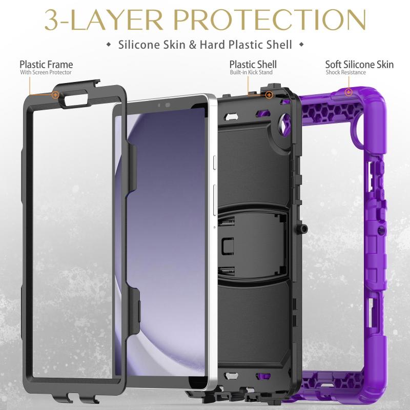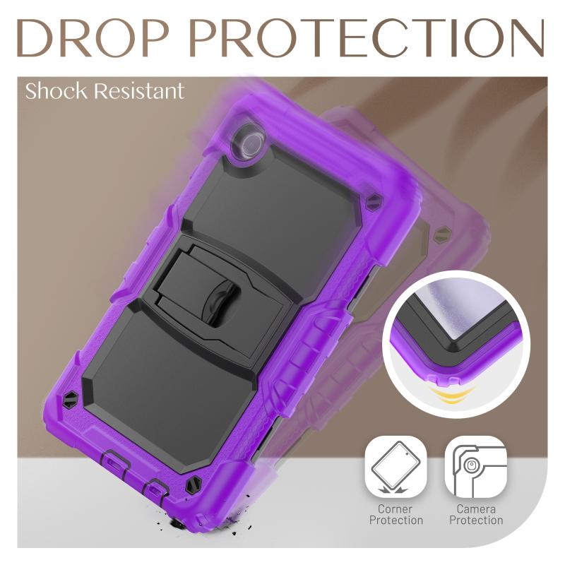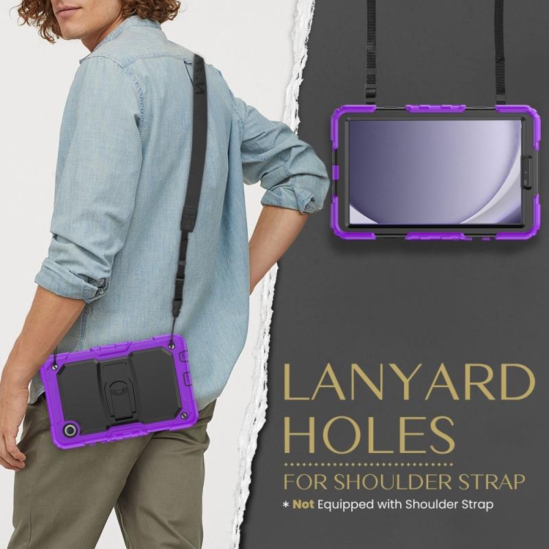 For Samsung Galaxy Tab A9 Silicone Hydric PC Tablet Case with Shoulder Strap & Holder(Purple)
