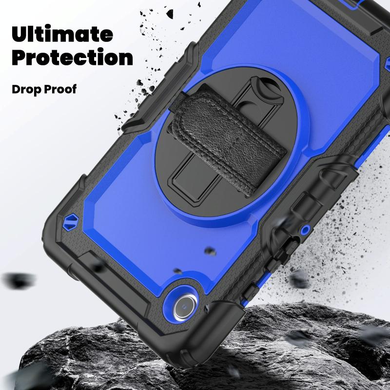 For Samsung Galaxy Tab A9 Silicone + PC Tablet Case with Shoulder Strap(Black+Dark Blue)