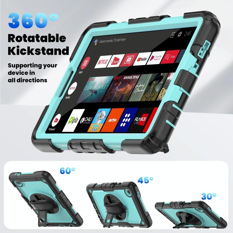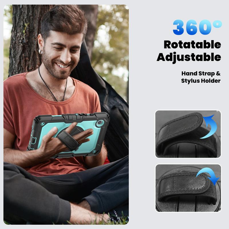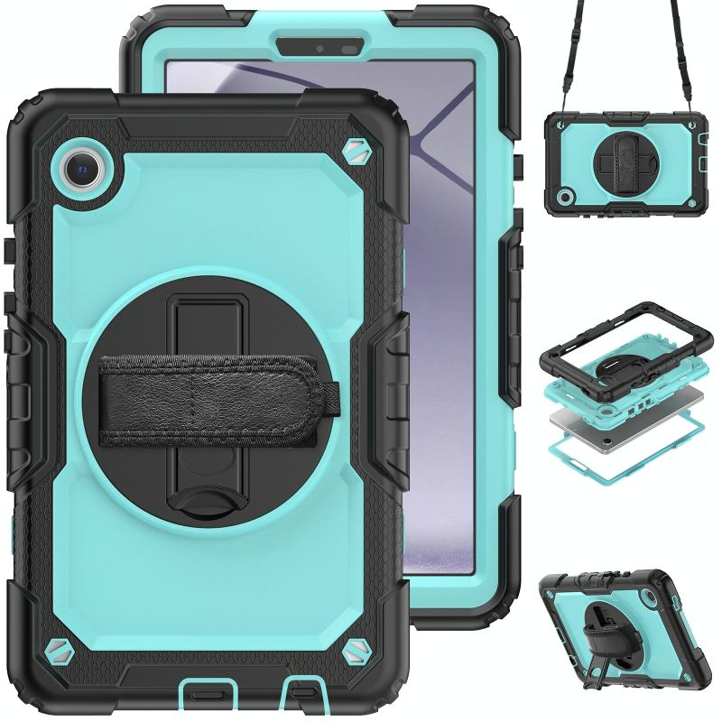 For Samsung Galaxy Tab A9 Silicone + PC Tablet Case with Shoulder Strap(Black+Light Blue)