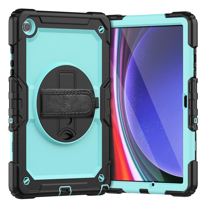 For Samsung Galaxy Tab A9+ Silicone + PC Tablet Case with Shoulder Strap(Black+Light Blue)