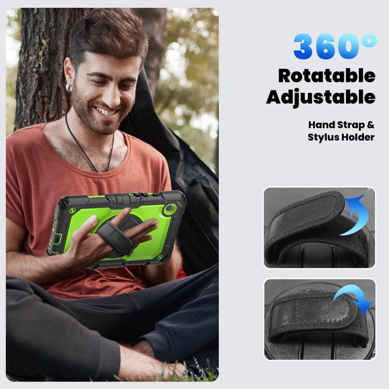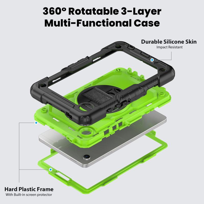For Samsung Galaxy Tab A9 Silicone + PC Tablet Case with Shoulder Strap(Black+Yellow Green)