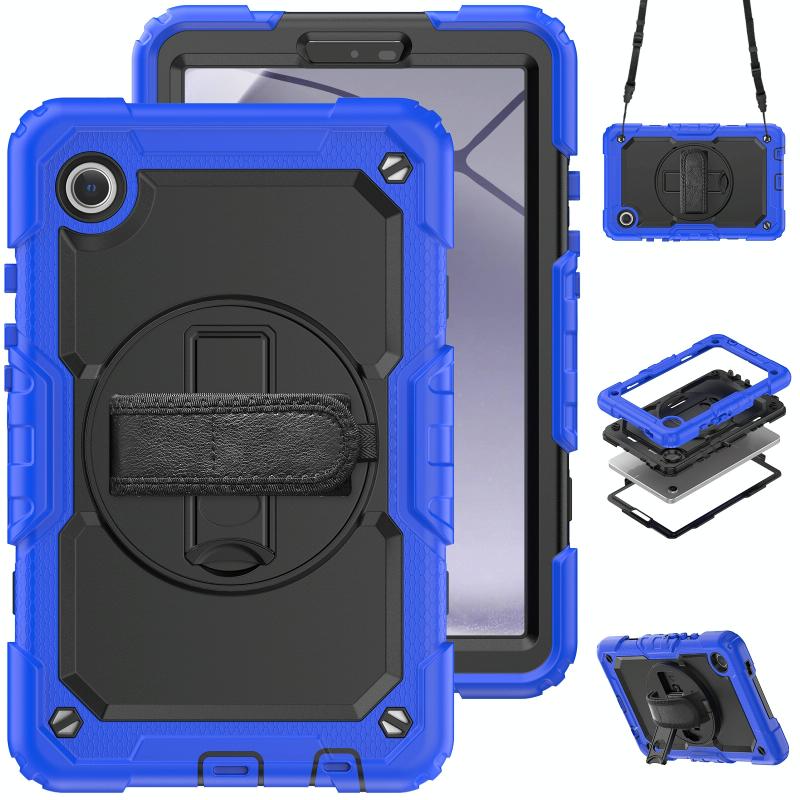 For Samsung Galaxy Tab A9 Silicone + PC Tablet Case with Shoulder Strap(Blue)