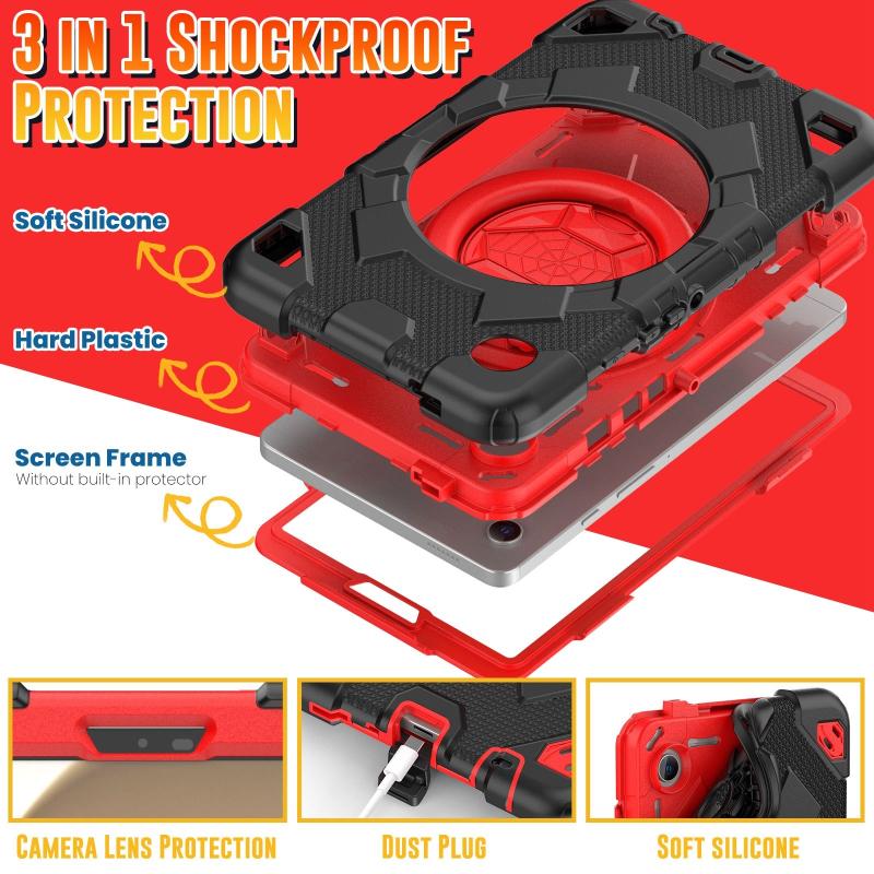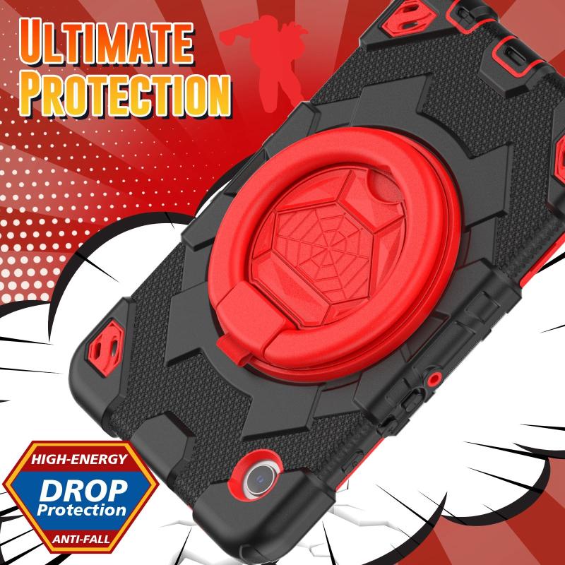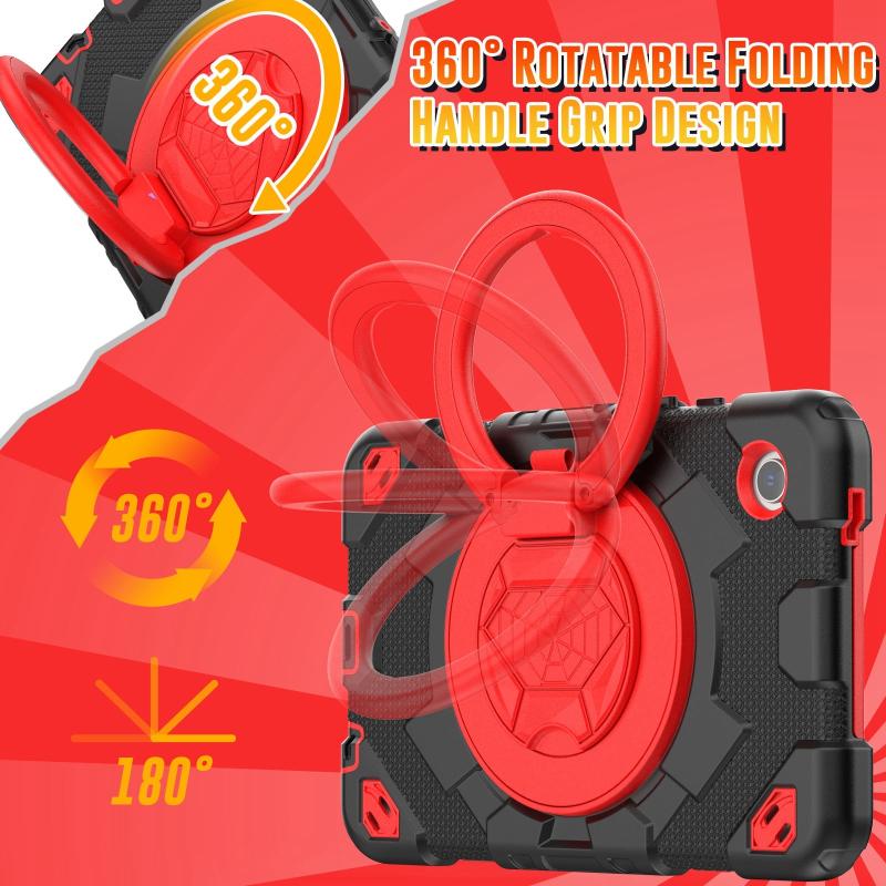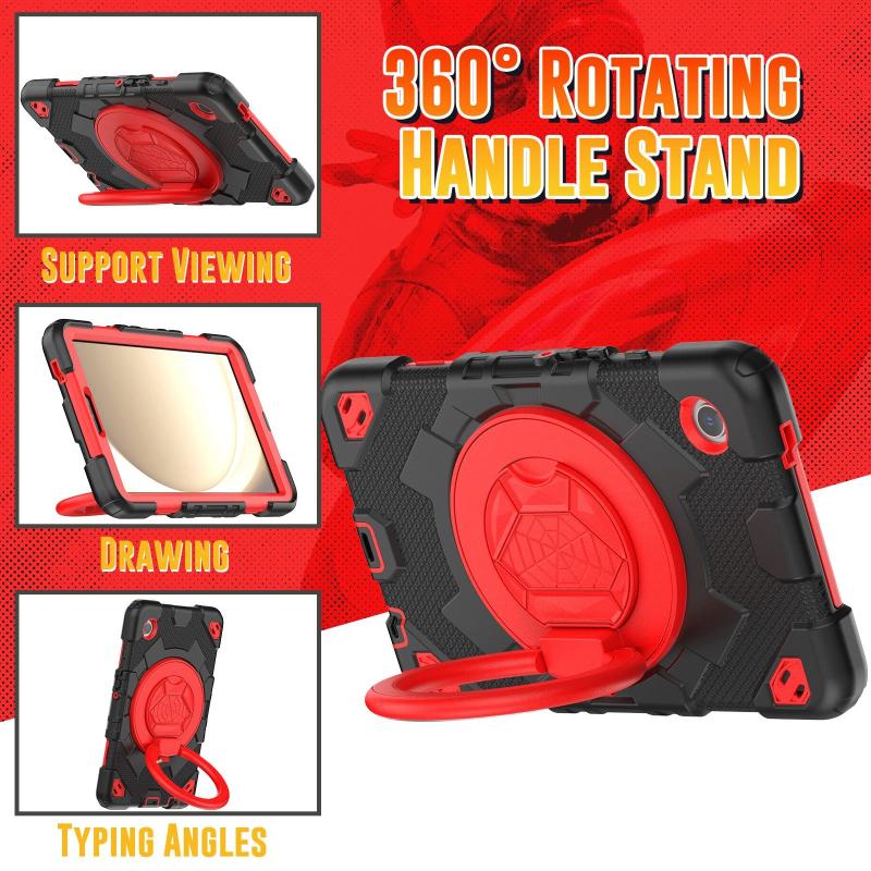 For Samsung Galaxy Tab A9 Spider Rotation Handle Silicone Hybrid PC Tablet Case(Black Red)