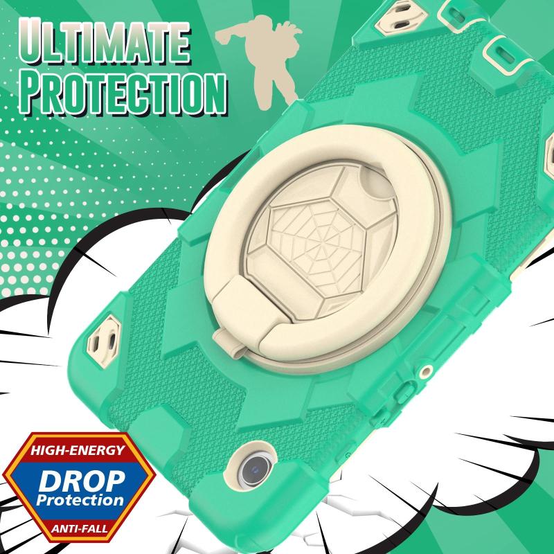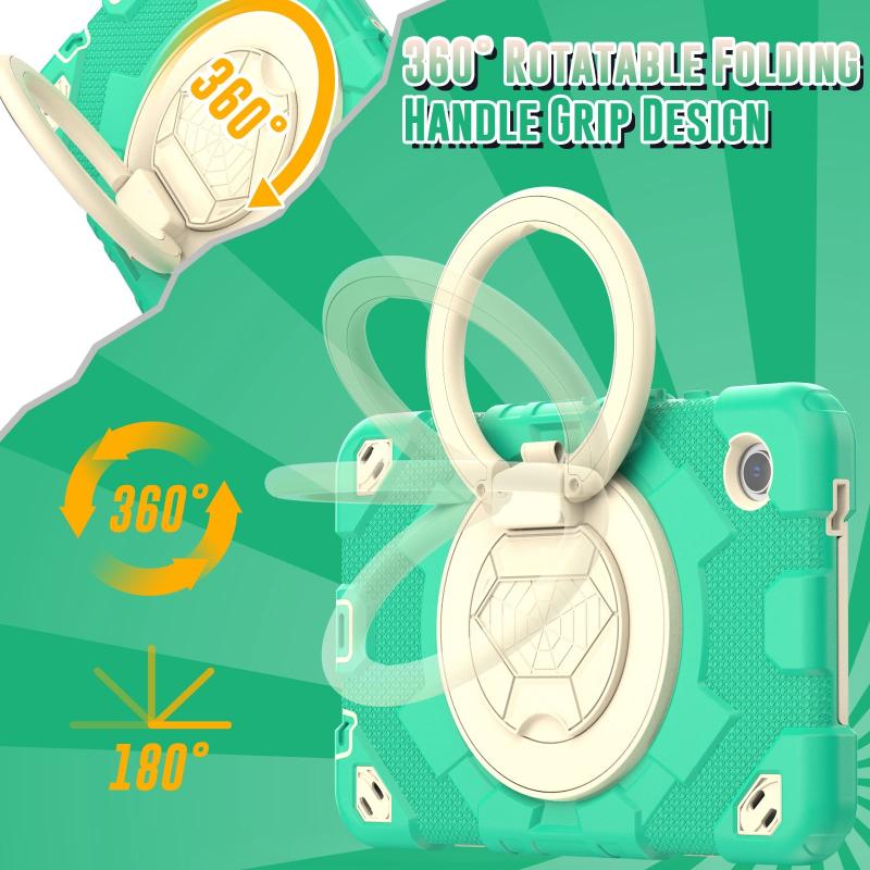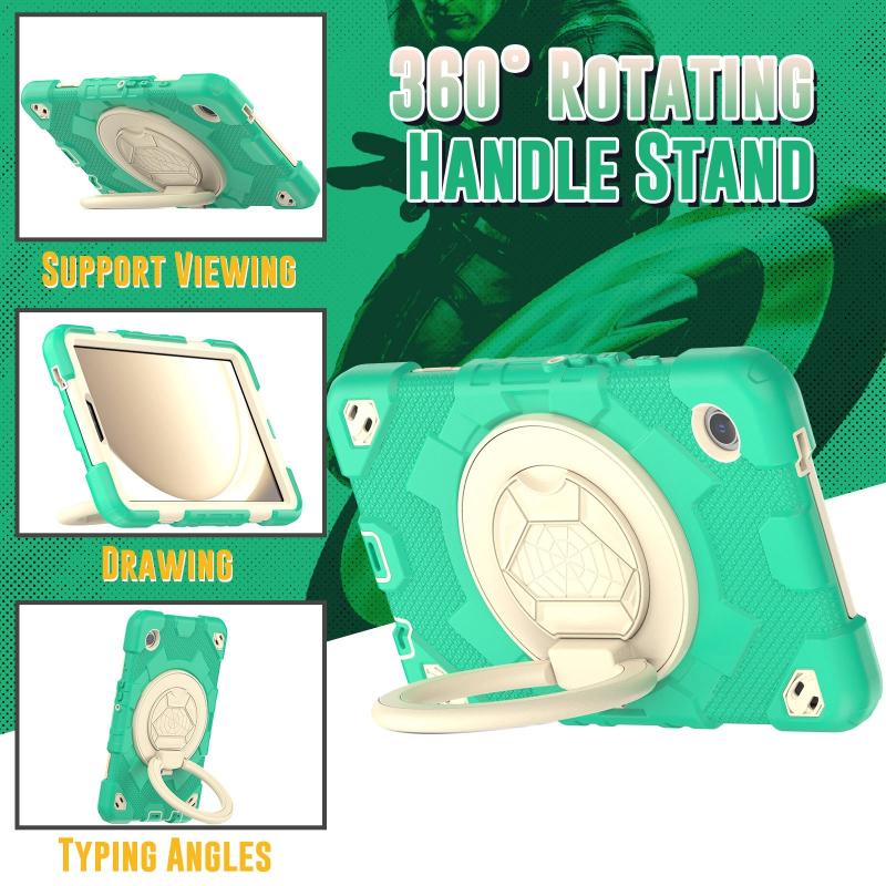 For Samsung Galaxy Tab A9 Spider Rotation Handle Silicone Hybrid PC Tablet Case(Cyan Beige)