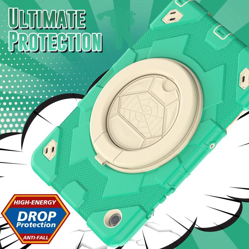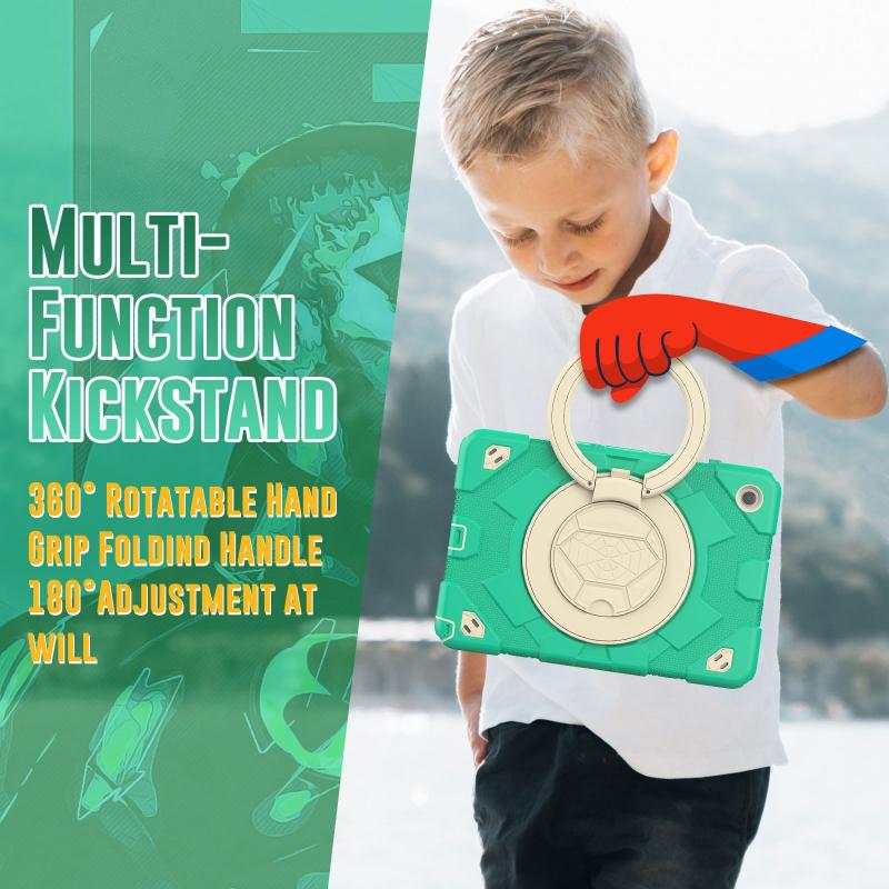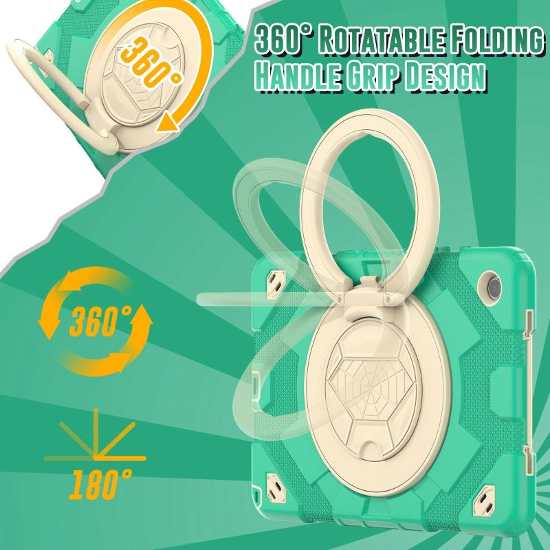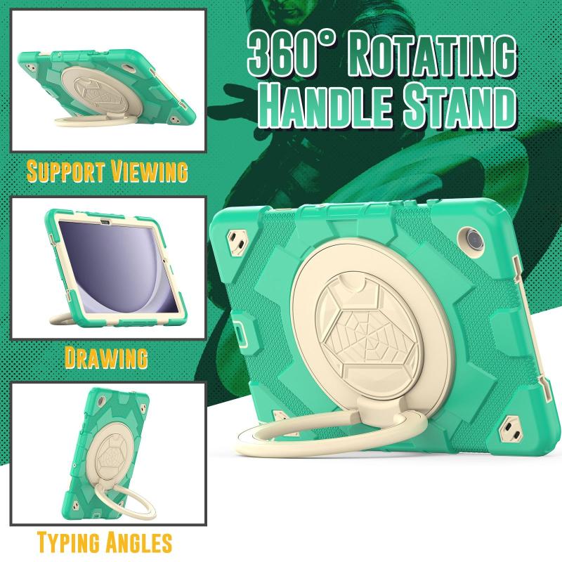For Samsung Galaxy Tab A9+ Spider Rotation Handle Silicone Hybrid PC Tablet Case(Cyan Beige)