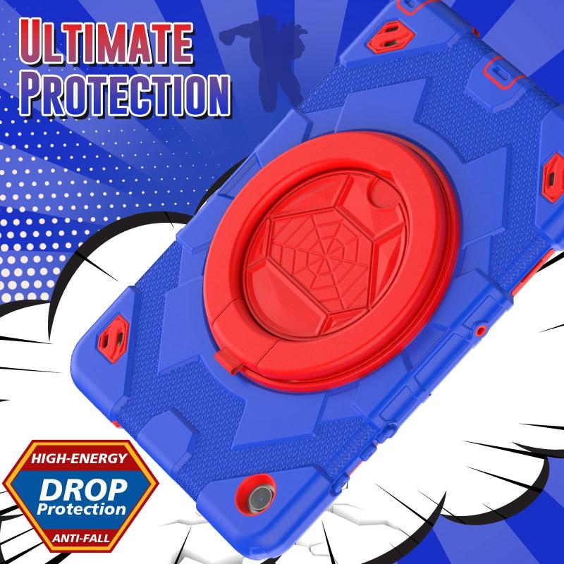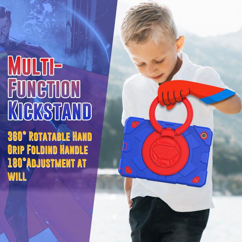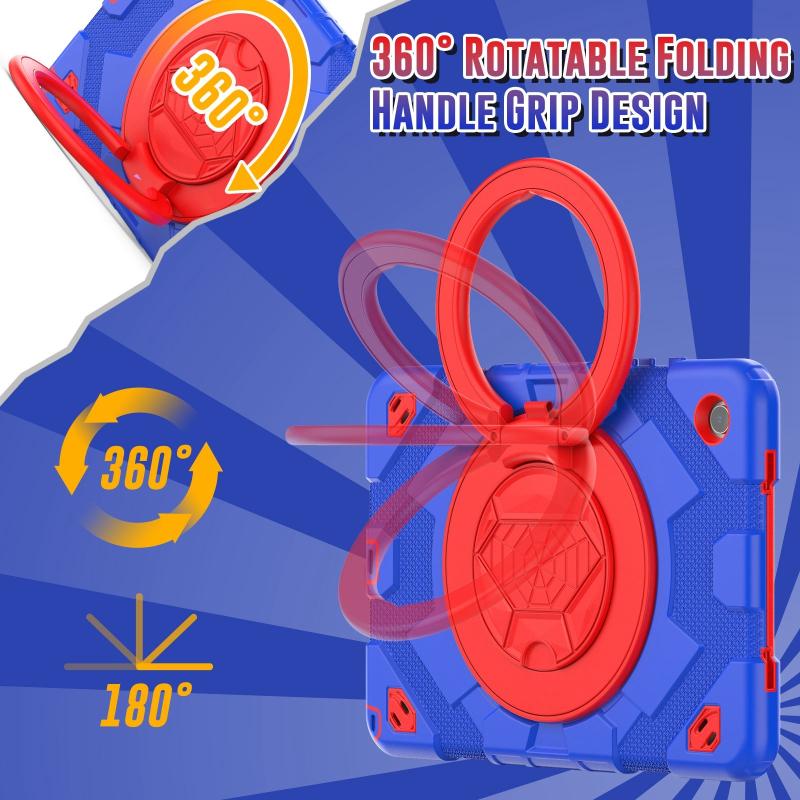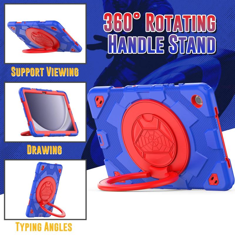 For Samsung Galaxy Tab A9+ Spider Rotation Handle Silicone Hybrid PC Tablet Case(Red Blue)