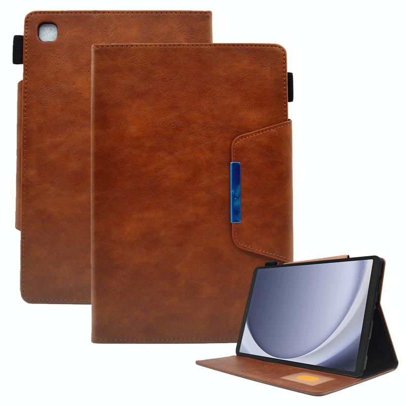 For Samsung Galaxy Tab A9 Suede Cross Texture Magnetic Clasp Leather Tablet Case(Brown)