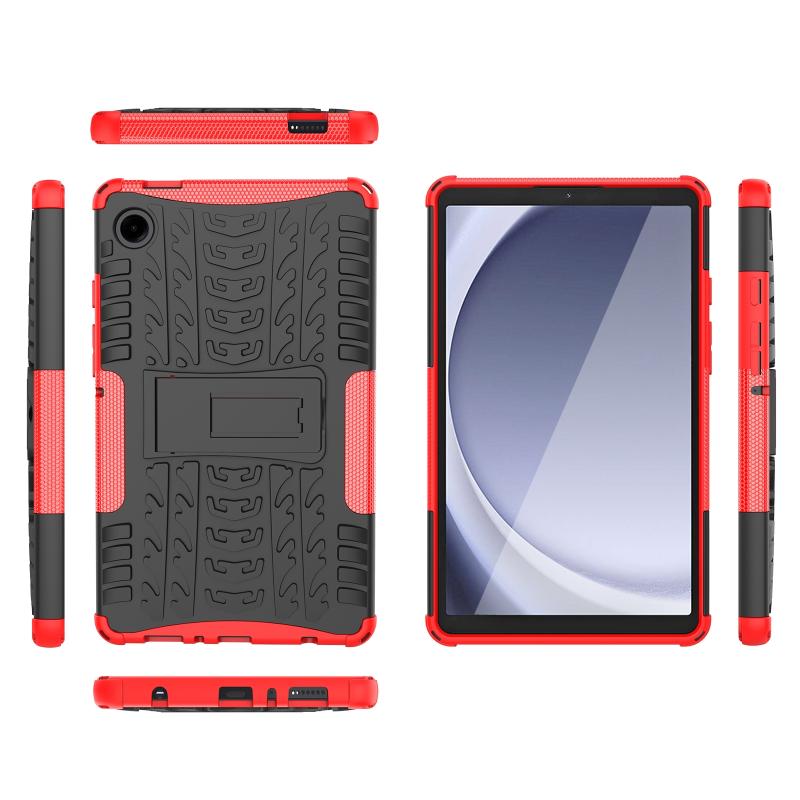 For Samsung Galaxy Tab A9 Tire Texture TPU + PC Tablet Case with Holder(Red)