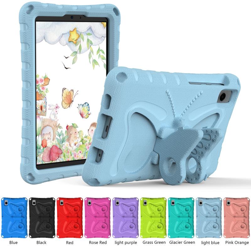 For Samsung Galaxy Tab A9 X110 Butterfly Bracket EVA Shockproof Tablet Case(Light Blue)